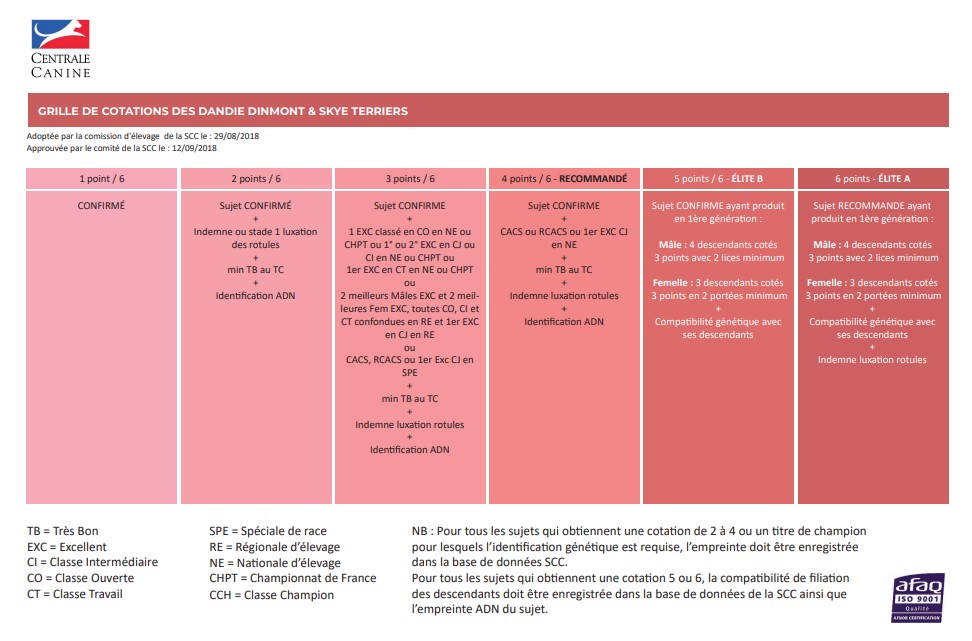– Les cotations servent à hiérarchiser les terriers d’Ecosse en prenant en compte les différents examens ou tests passés, les qualificatifs et les places obtenus lors des expositions, ainsi que le classement de leur progéniture.